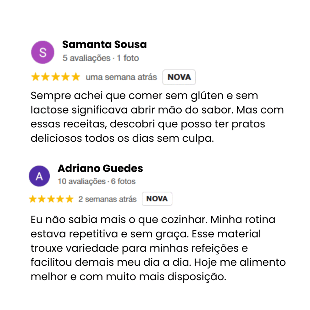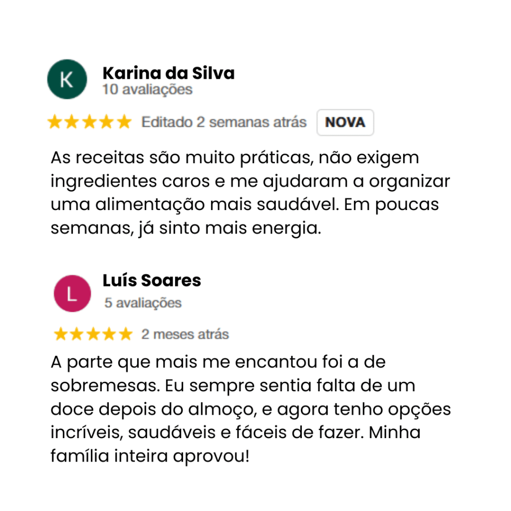 Esse é exatamente o MESMO conteúdo que centenas de pessoas já utilizaram para transformar a alimentação em algo prazeroso e saudável, sem abrir mão do sabor (são mais de 1000 receitas testadas e aprovadas).